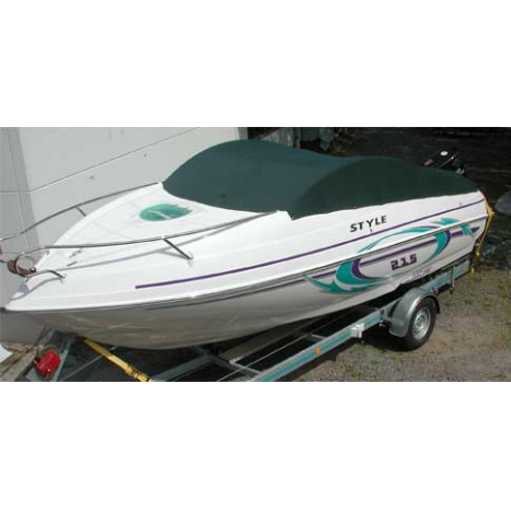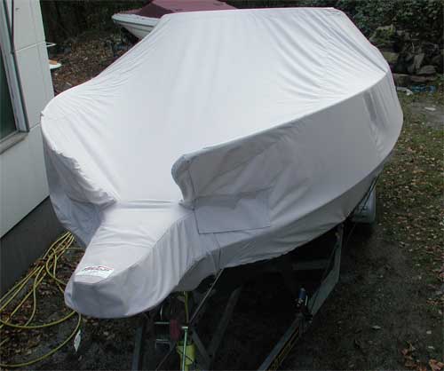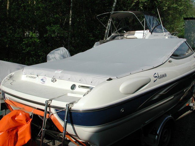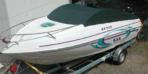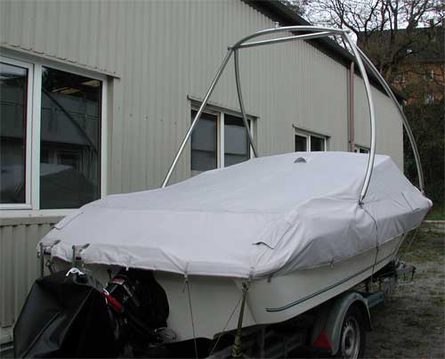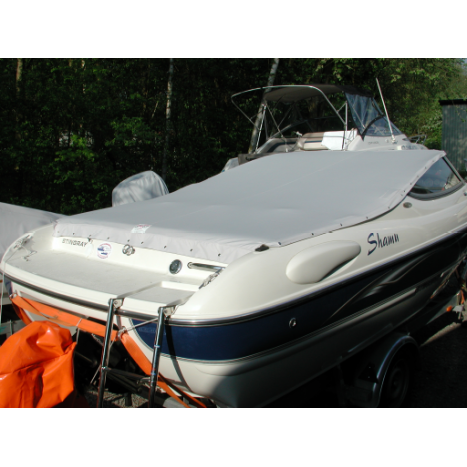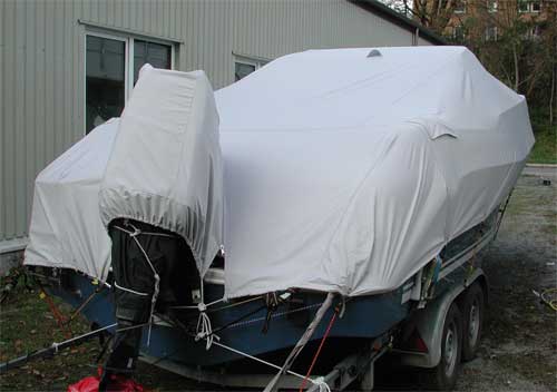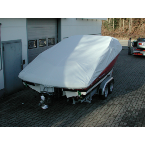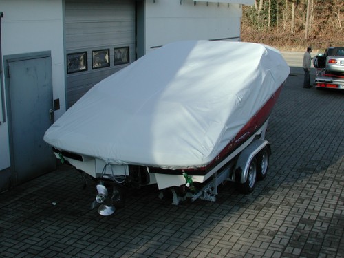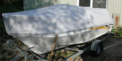 Diese Persenning wird auf dem Wasser und zum Tranport auf dem Trailer verwendet. Im letzen Fall müssen am Vordersaum der Persenning einige selbstarretierende Knöpfe verwendet werden.
