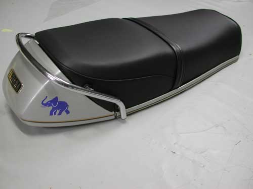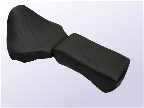 Die Sitzfäche der Motorradsitzbank wurde mit einem Stickmotiv dekoriert.