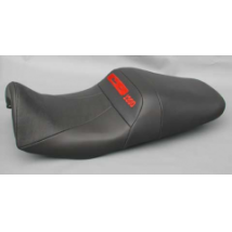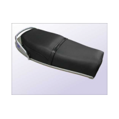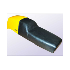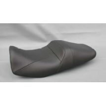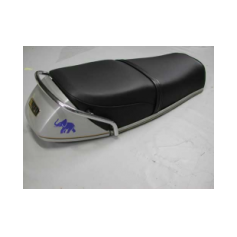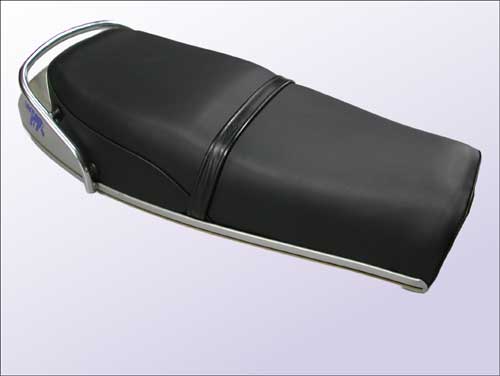 Diese Motorradsitzbank wurde mit einem Haltegurt versehen. Die Form wurde durch einen hinten herumlaufenden Boden und einem vorderen Spiegel gebildet. Diese Formteile bewirken die gleichmäßige Spannung der Sitzfläche.