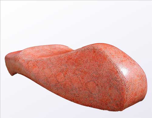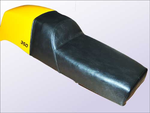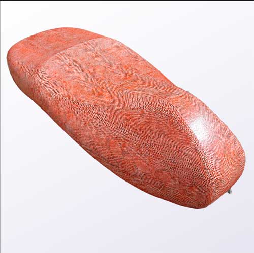 Hier wurde durch teilen und zusammenfügen einzelner Zuschnittteile die kantige Form der Motorrradsitzbank hervorgehoben.